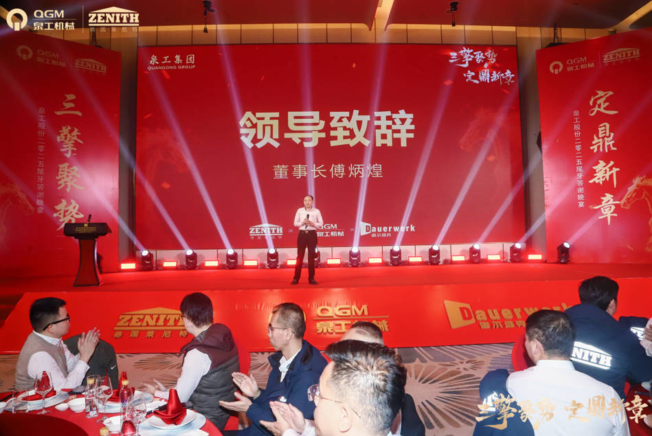A’ cruinneachadh riochdairean bho gach roinn agus dreuchd, thog an luchd-frithealaidh na glainneachan aca mar chomharrachadh, a’ doimhneachadh am faireachdainn de bhuinteanas tro cho-chomann agus iomlaid. Tha “Three Engines Driving Momentum” a’ frithealadh chan ann a-mhàin mar chuspair bliadhnail ach cuideachd mar an stiùir air cùl leasachadh Quangong san àm ri teachd. Anns a’ bhliadhna ùr, cumaidh Quangong Co., Earr. a’ cleachdadh ùr-ghnàthachadh teicneòlach mar an einnsean aige, a’ togail air a’ bhunait de dh’ uidheamachd dèanamh bhreigichean àrd-inbhe, agus a’ leudachadh a làthaireachd sa mhargaidh chruinneil. Leanaidh a’ chompanaidh adhartasan leantainneach ann an innealan breige neo-loisgte agus uidheamachd cruthachaidh blocaichean, a’ cur neart làidir Quangong ri adhartachadh togail uaine.